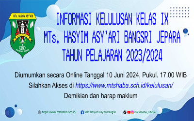 INFORMASI KELULUSAN KELAS IX MTs. HASYIM ASY'ARI BANGSRI
